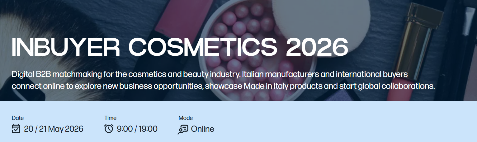 Vai alla pagina dedicata: https://inbuyer.promositalia.com/inbuyer/events-calendar/inbuyer-cosmetics-2026.kl
